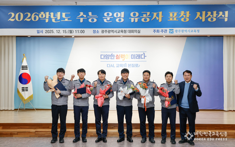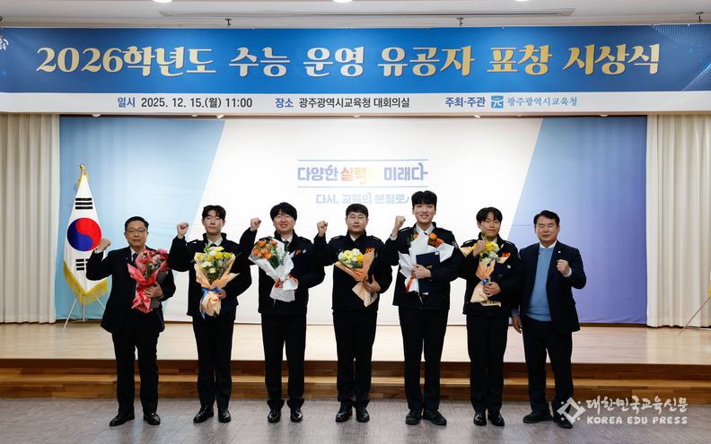 이정선 교육감은 이날 시상식에서 수능 운영 유공 경찰관 6명, 구급대원 6명 등 12명에게 표창을 수여하고, 광주광역시 모범운전자회에 감사패를 전달했다.