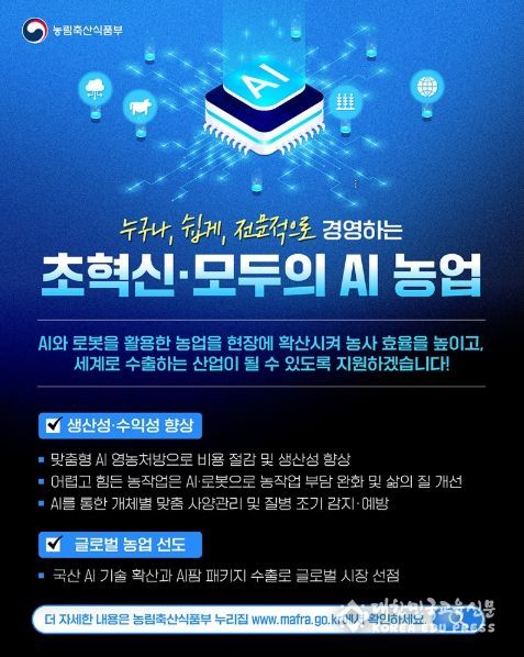 농림축산식품부, 누구나, 쉽게, 전문적으로 경영하는 초혁신·모두의 AI 농업