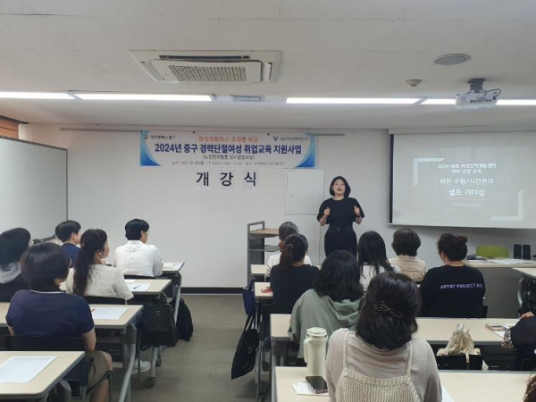이번 교육은 여성들의 경제사회 참여를 확대하고 경제적 자립여건을 마련하는 ‘함께 일하기 좋은 여성친화도시’ 조성사업의 일환으로, 중구청과 대전여성인력개발센터가 협업하여 추진하는 구비 100% 지원사업이다.