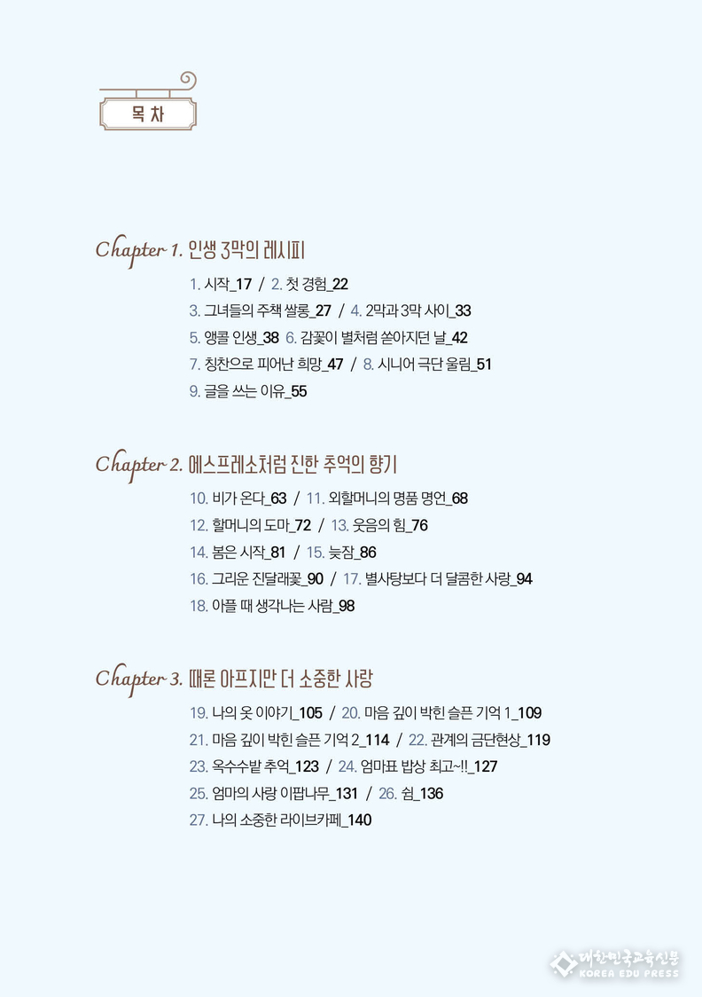 ■ 차례(목차)로 읽는 인생 3막의 레시피