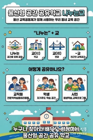 [대한민국교육신문] 울산광역시교육청은 학교 공간을 교육 공동체가 함께 나누는 배움터로 확장하는 울산형 공간 공유학교 ‘나누는 교’를 본격 운영한다.