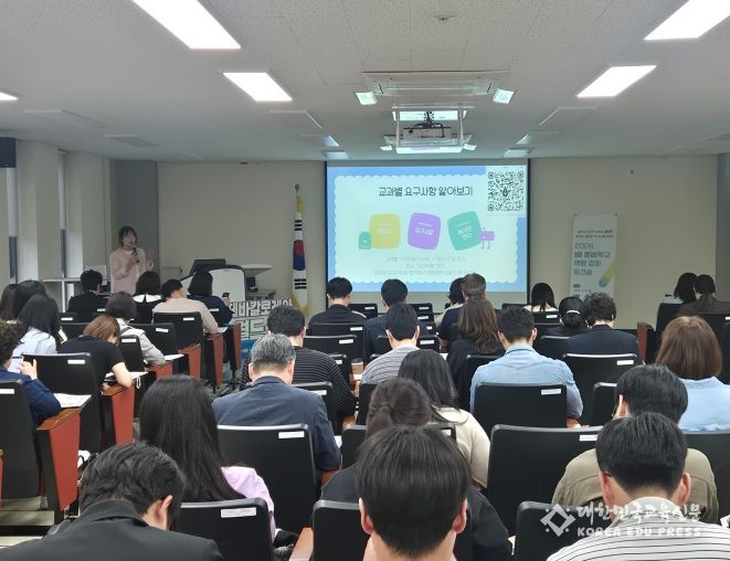▲IB 준비학교 운영 안내 ▲경기도 안성시 죽산중 IB 월드스쿨 사례 ▲충주중앙탑초 관심학교 사례 ▲금천중 후보학교 사례 나눔 ▲질의응답 순으로 진행됐으며, 참석 교원들은 운영 절차와 인증 단계별 준비 과정, 실행 전략을 중심으로 실무 정보를 공유했다.