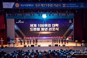 [대한민국교육신문] 경상국립대학교는 10월 20일 오전 10시 가좌캠퍼스 GNU컨벤션센터 2층 대강당에서 개교 77주년 기념식을 개최했다. 개교기념식은 개식, 국민의례, 대학 연혁 보고, 개척시 낭송, 총장 기념사, 축사, 시상식, 비전 선포식, 교가 제창, 기념 촬영 등의 순으로 진행했다. 개교기념식 행사는 경상국립대학교 유튜브 채널을 통해 실시간 송출했다. 경상국립대학교는 기념식에서 각종 시상식[개척명예장, 총장 특별상, 개척한림원 표창, 7인의 영리서처(Young Researcher) 현판 수여, 장기근속상]을 마련하여 대학 발전에 기여한 교내·외 인사와 우수 연구자들의 공로를 기렸다. ▲개척명예장은 ㈜영남소방엔지니어링 류상수 대표에게 수여했다. 류상수 대표는 경상국립대학교 농업기계공학과를 졸업(1982년)했으며, 삼성공조(주), 안전보건공단 등을 거쳐 1996년에 ㈜영남소방엔지니어링에 입사 후 2005년 대표이사로 취임했다. 3월 14일 대학발전기금 1억 원을 출연하며 “나눔을 받아야 하는 대상은 많지만 모교 후배들의 장학을 위한 발전기금으로 기부하는 것이 무엇보다도 가치 있는 일이고, 그들로 하여금 또 다른 사회봉사가 이루어질 수 있다고 생각되어 모
